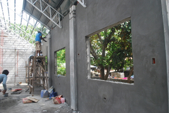 미장과 지붕 철판 얹기, 창문 , 출입문 페인팅 공사등이 남았습니다.