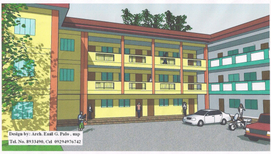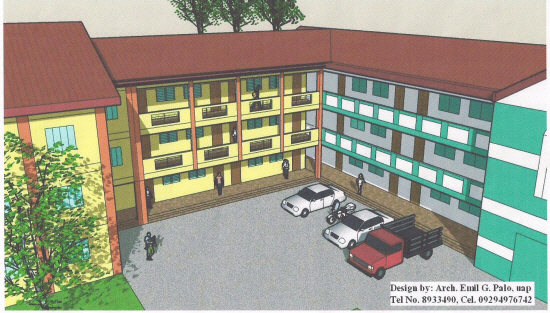 기존의 양 건물을 연결하여 새로운 고등학교 건물을 3층으로 신축하는 조감도 입니다.