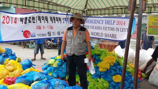 700가정을 대상으로 준비한 1가정당 쌀 2800g , 물 2L, 라면 5개씩을 분배하고 지붕을 고치는 못