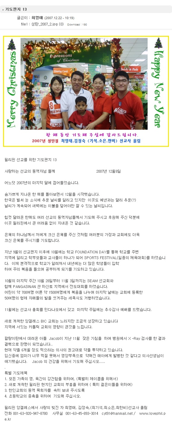 ::: 최영태,김정숙선교사 홈페이지에 오신 것을 환영합니다 :::