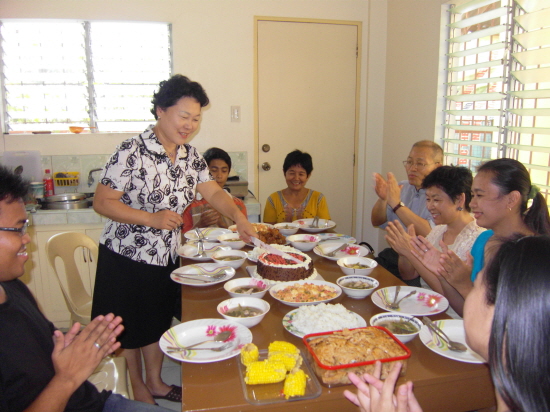 교사들이 깜작쇼를 펼쳤다. 난데없는 케익과 통닭을 들고 나타난 것이다