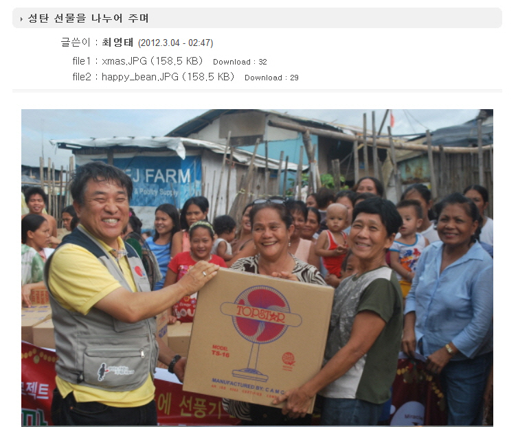 지난 12월 19일 월드쉐어와 함께 마닐라 톤도 지역과 싼 마테오 지역 저 소득층 가정에