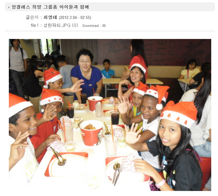 지난 성탄에는 모 독지가가 제공하는 성탄 파티를 KFC 에서 하였다.