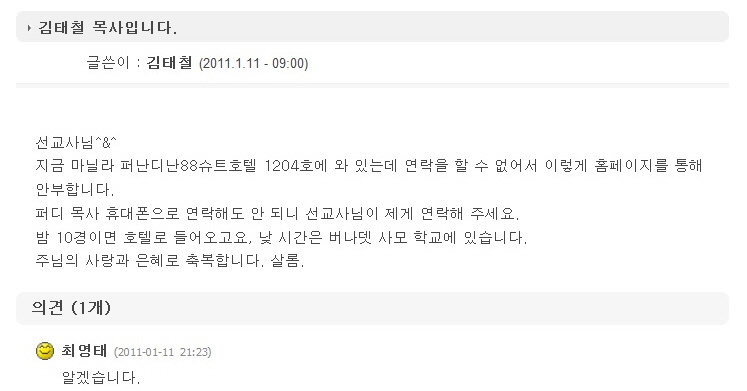 ::: 최영태,김정숙선교사 홈페이지에 오신 것을 환영합니다 :::