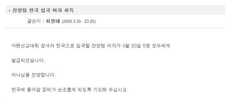 찬양팀 한국 입국 비자 취득