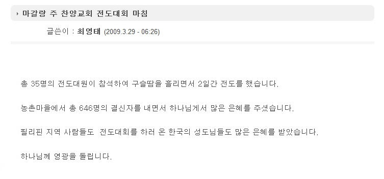 마갈랑 주 찬양교회 전도대회 마침