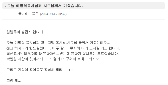 오늘 이명희목사님과 사모님께서 가셨습니다.