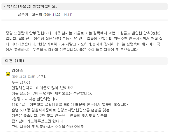 목사님!사모님! 안녕하셨어요.
