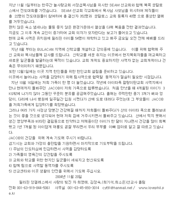 필리핀을 위한 기도편지 6 (성탄 인사)