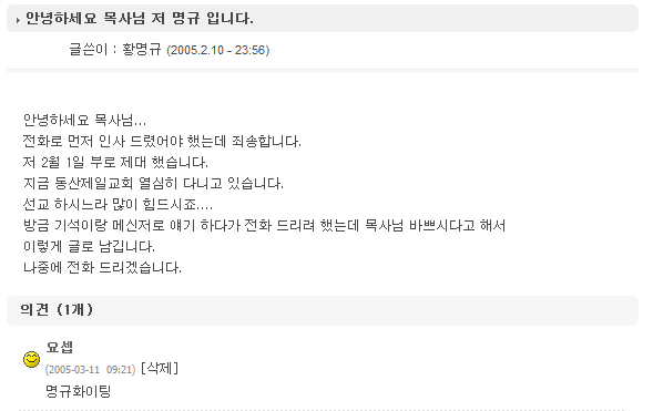 안녕하세요 목사님 저 명규 입니다.
