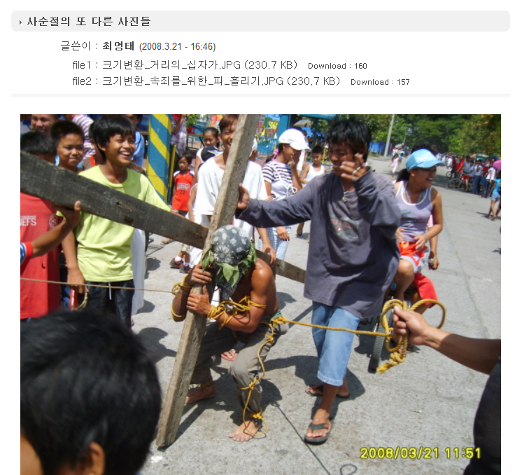 길거리에서 흔히 볼수 있는 십자가를 진 광경입니다.