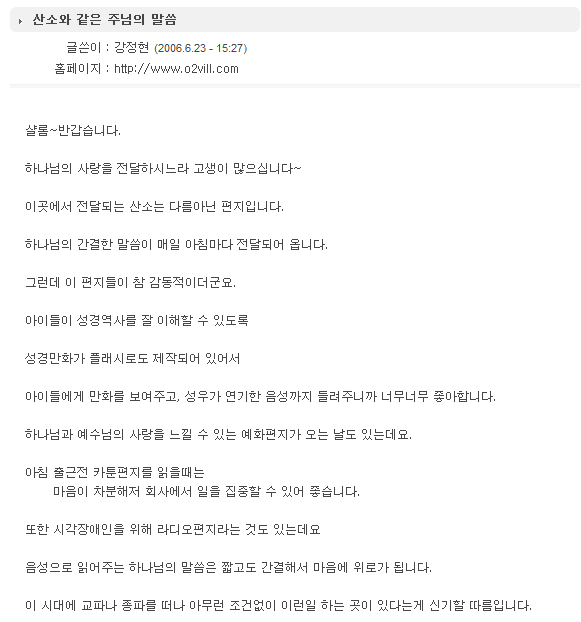 산소와 같은 주님의 말씀