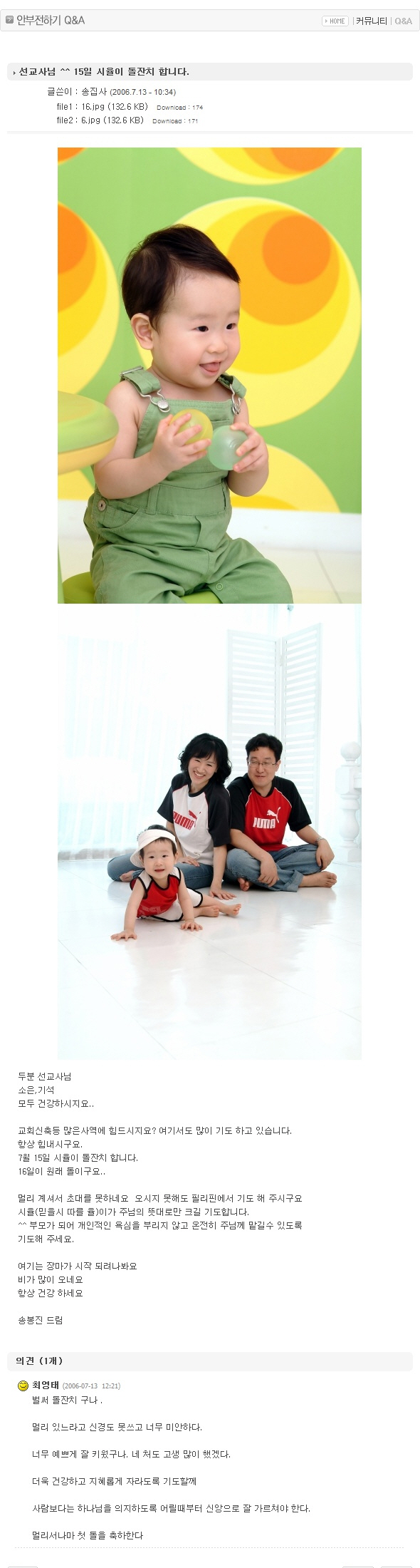 선교사님 ^^ 15일 시율이 돌잔치 합니다.