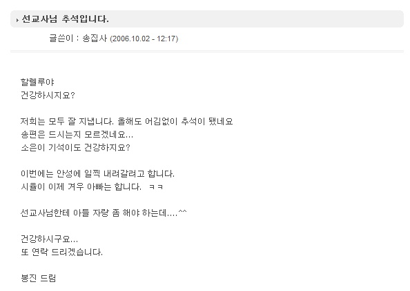 선교사님 추석입니다.