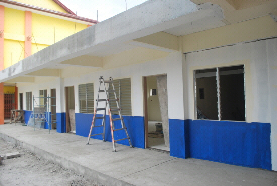교및 고등학교로 사용될 건물 1층이 거의 완성 단계에 있습니다.