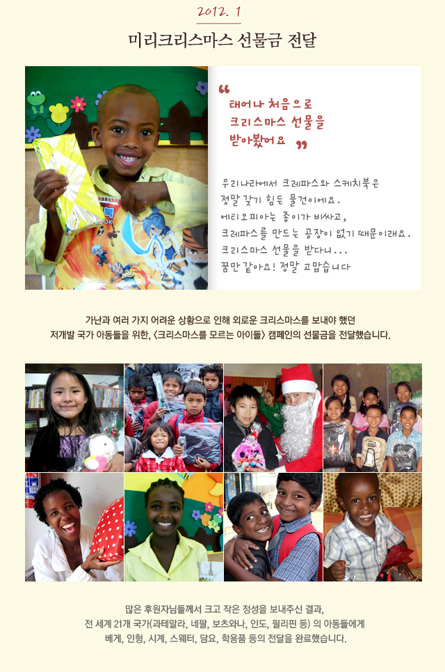 최영태 선교사의 활동 사진 실린 홈 페이지