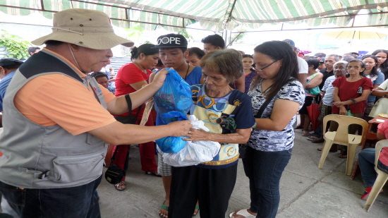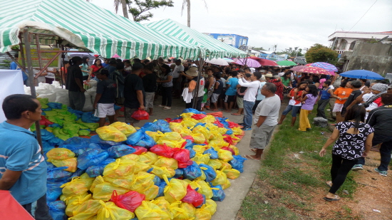 700가정을 대상으로 준비한 1가정당 쌀 2800g , 물 2L, 라면 5개씩을 분배하고 지붕을 고치는 못