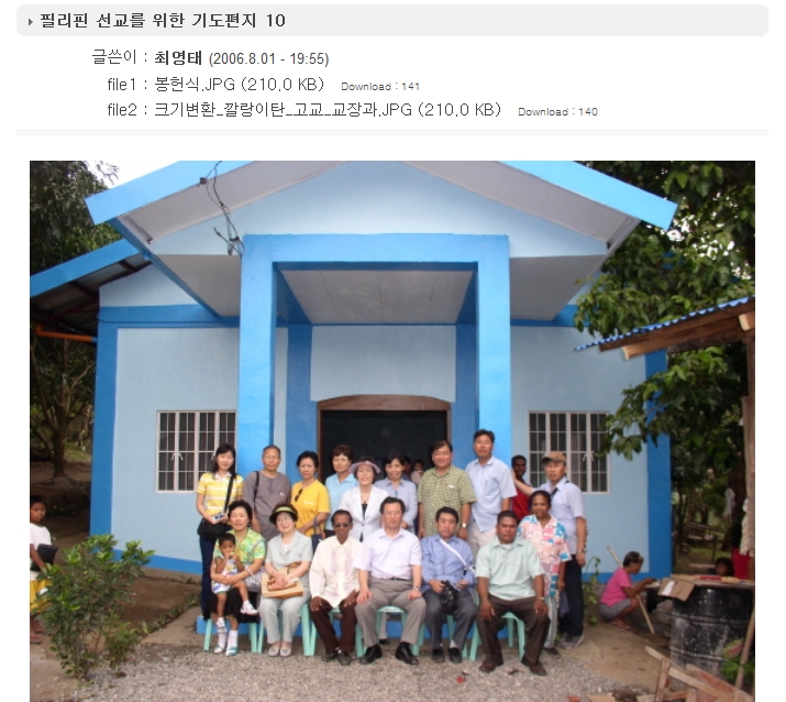 필리핀 앙겔레스에서 사랑의 빚진 자 최영태, 김정숙,(최기석,최소은)선교사 올림