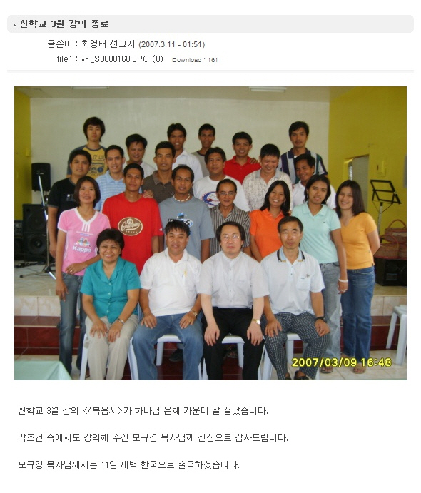 신학교 3월 강의 종료