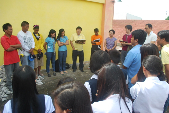 고등학교 학생들과 교사들 그리고 공사 진행자들까지 참석하여 하나님께 영광을 돌렸습니다.