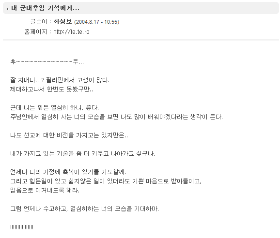 내 군대후임 기석에게...