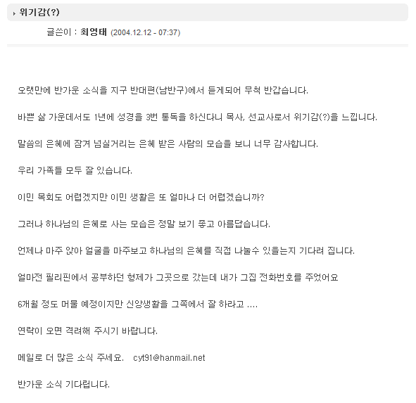 ::: 최영태,김정숙선교사 홈페이지에 오신 것을 환영합니다 :::