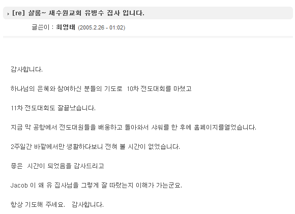 [re] 샬롬~ 새수원교회 유병수 집사 입니다.