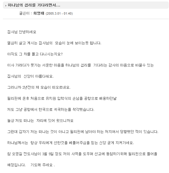 ::: 최영태,김정숙선교사 홈페이지에 오신 것을 환영합니다 :::