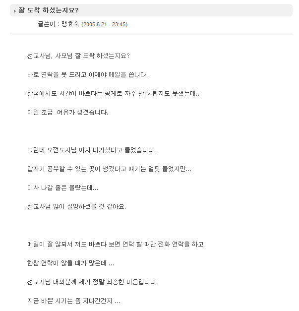 잘 도착 하셨는지요?
