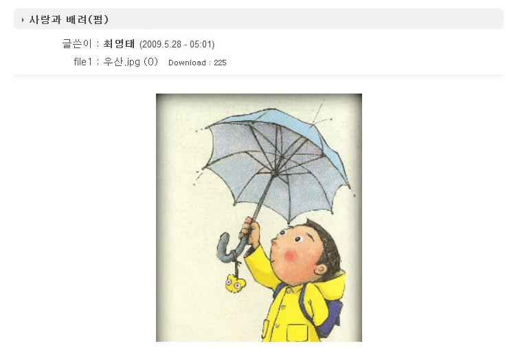 선생님 비 맞으시면 안 되잖아요.