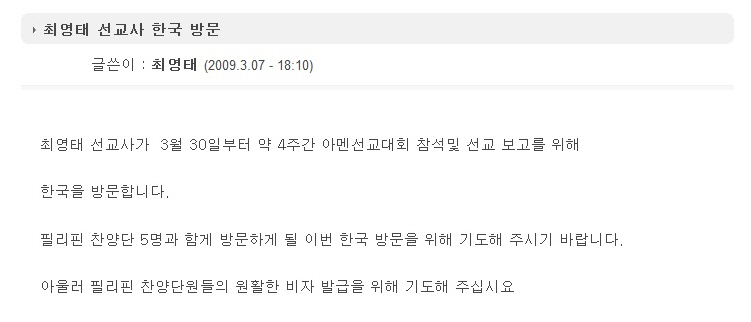 ::: 최영태,김정숙선교사 홈페이지에 오신 것을 환영합니다 :::