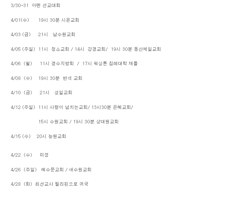 자세한 한국일정