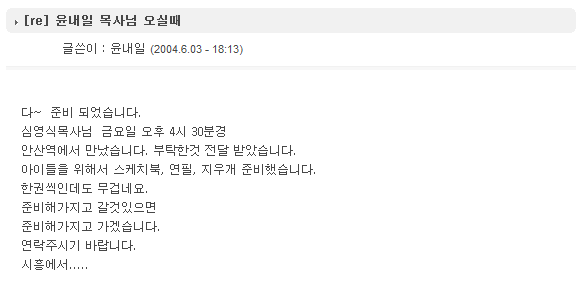[re] 윤내일 목사님 오실때