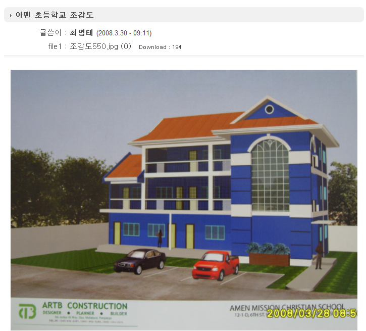 예진학원 아멘 초등학교 건물의 완성 조감도가 나왔습니다.