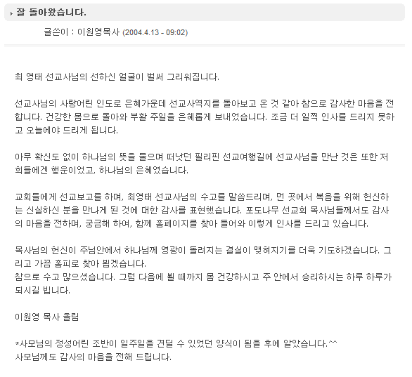 ::: 최영태,김정숙선교사 홈페이지에 오신 것을 환영합니다 :::
